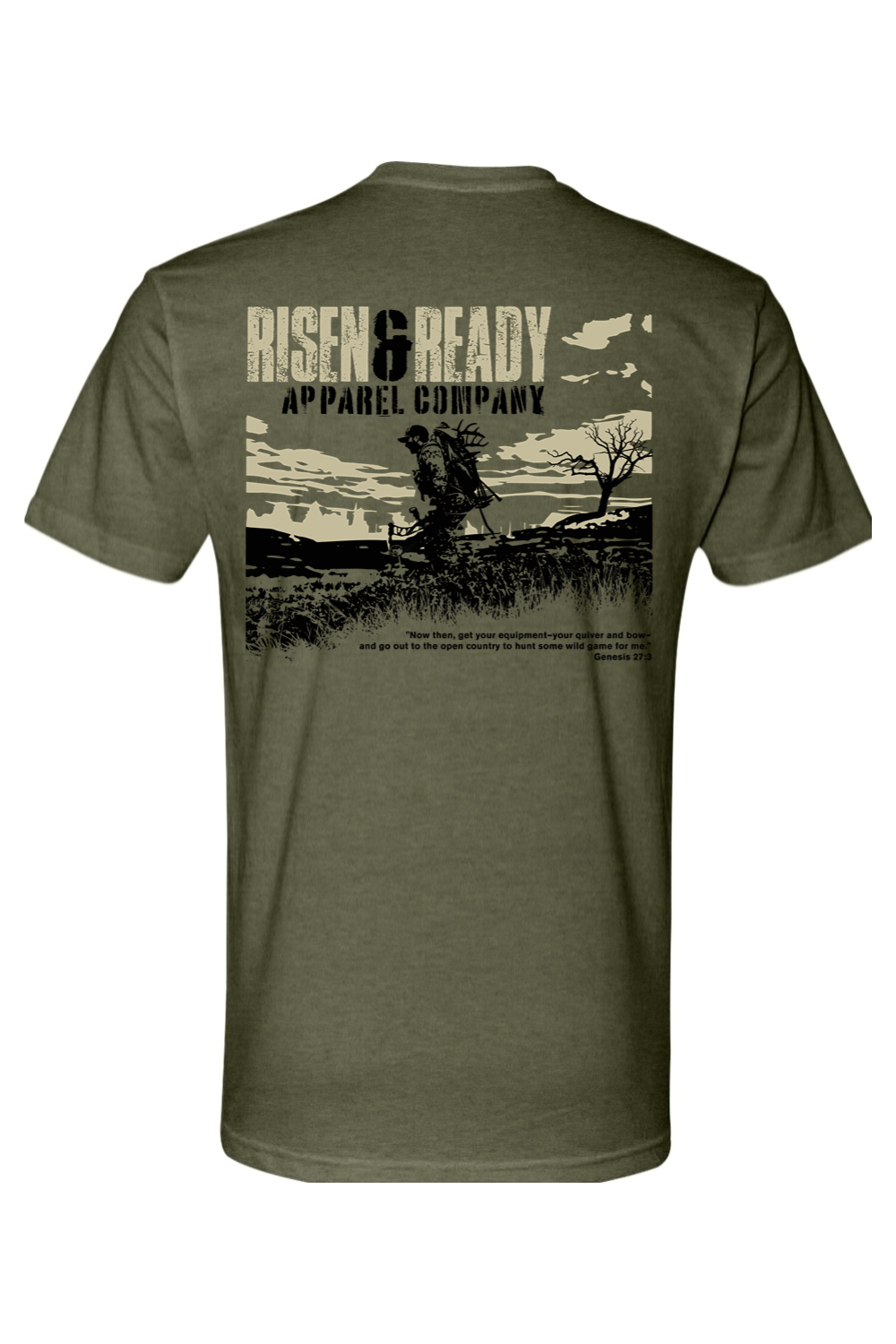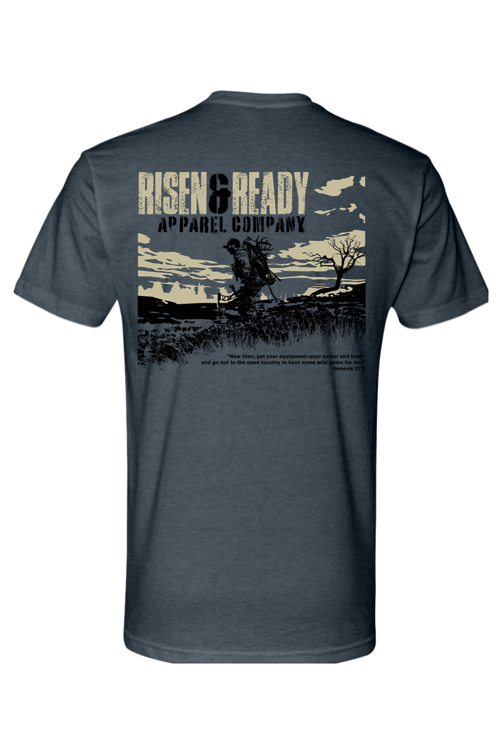 Faith.Focus. Follow-through. This design captures the spirit of the hunt — the reward that comes from preparation, patience, and purpose. Inspired by Genesis 27:3, “Now then, get your equipment—your quiver and bow—and go out to the open country to hunt some wild game,” this tee celebrates the discipline and drive that define every successful hunt.