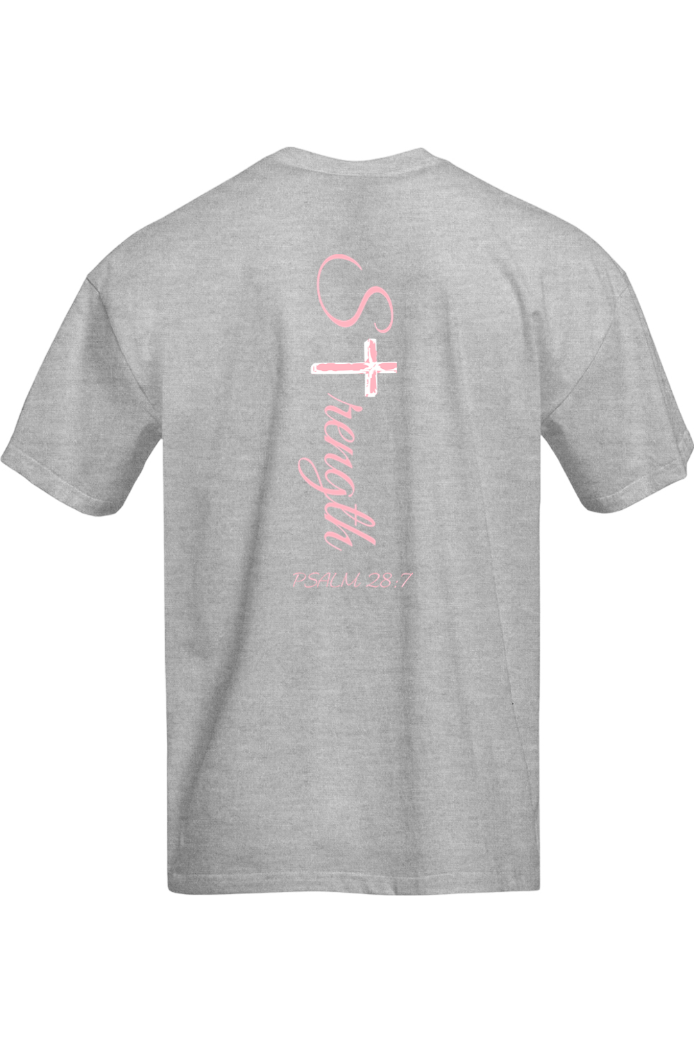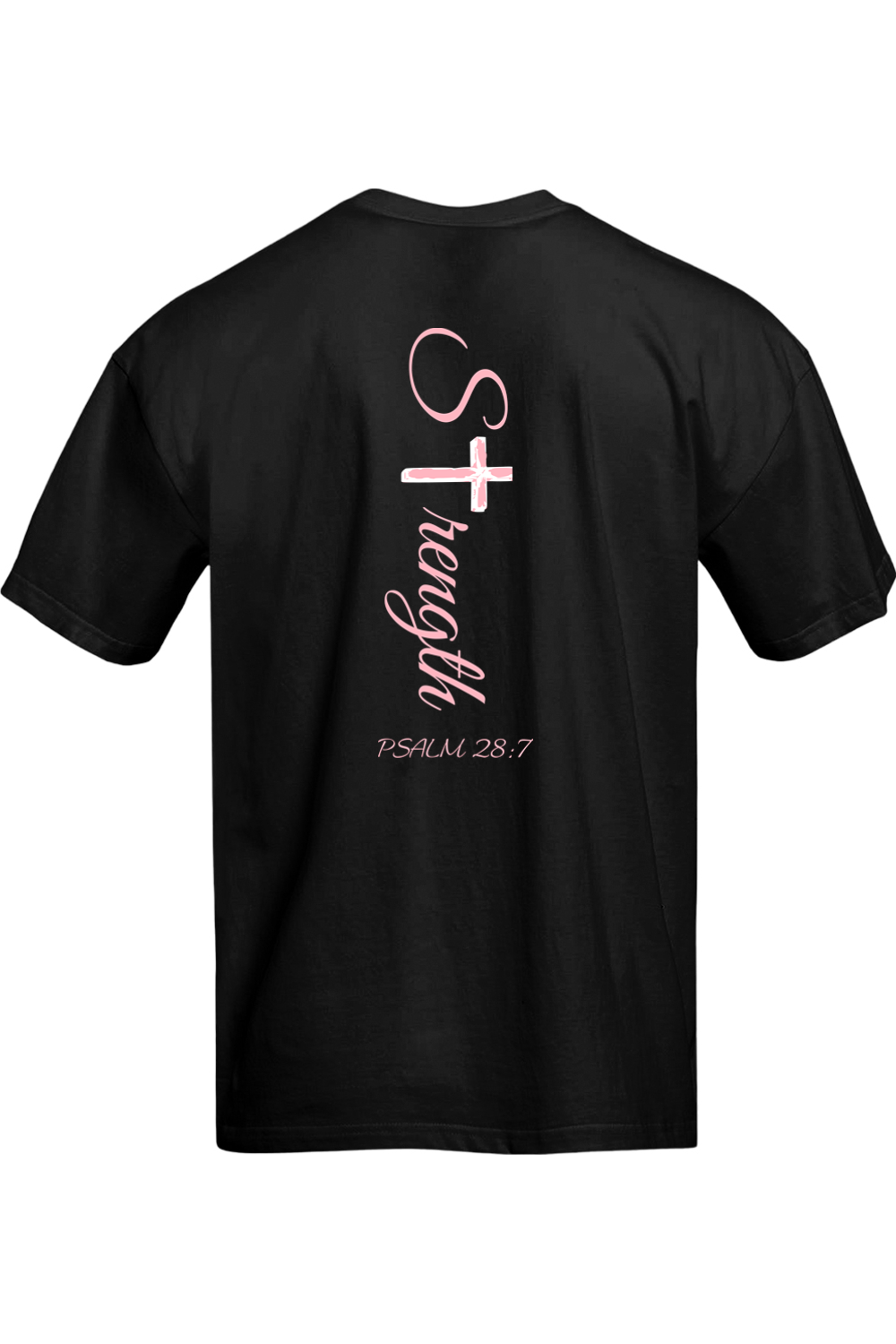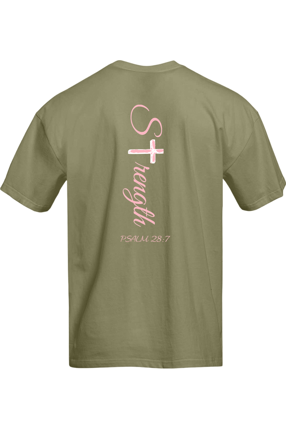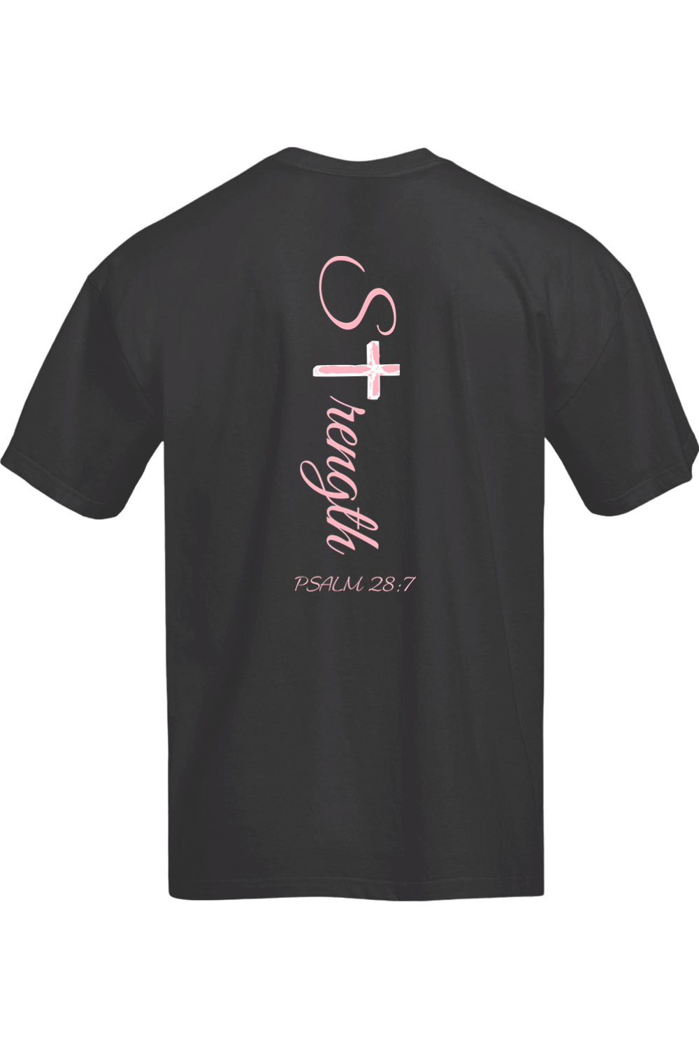 The Lord Is My Strength Oversized Tee is a bold expression of faith and resilience. With “Strength” designed vertically through the cross and the verse reference from Psalm 28:7, this shirt serves as a daily reminder that your power and protection come from Him alone.