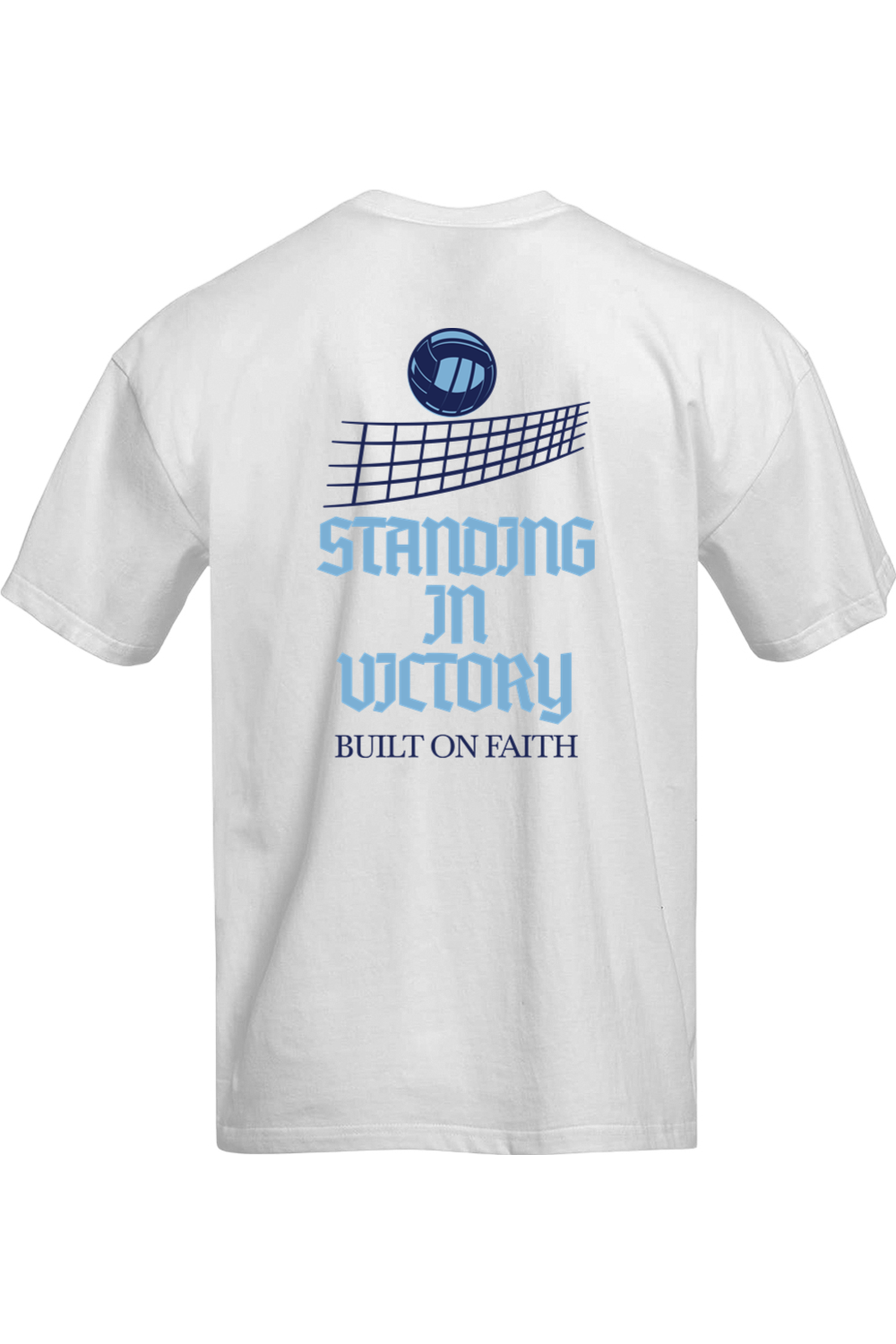 Faith, strength, and the love of the game all come together in the Victory Volleyball Oversized Tee. Featuring a bold volleyball-and-net graphic above the words “Standing in Victory – Built on Faith,” this shirt is designed for athletes who play with heart and purpose. It’s a reminder that true victory starts with Christ.