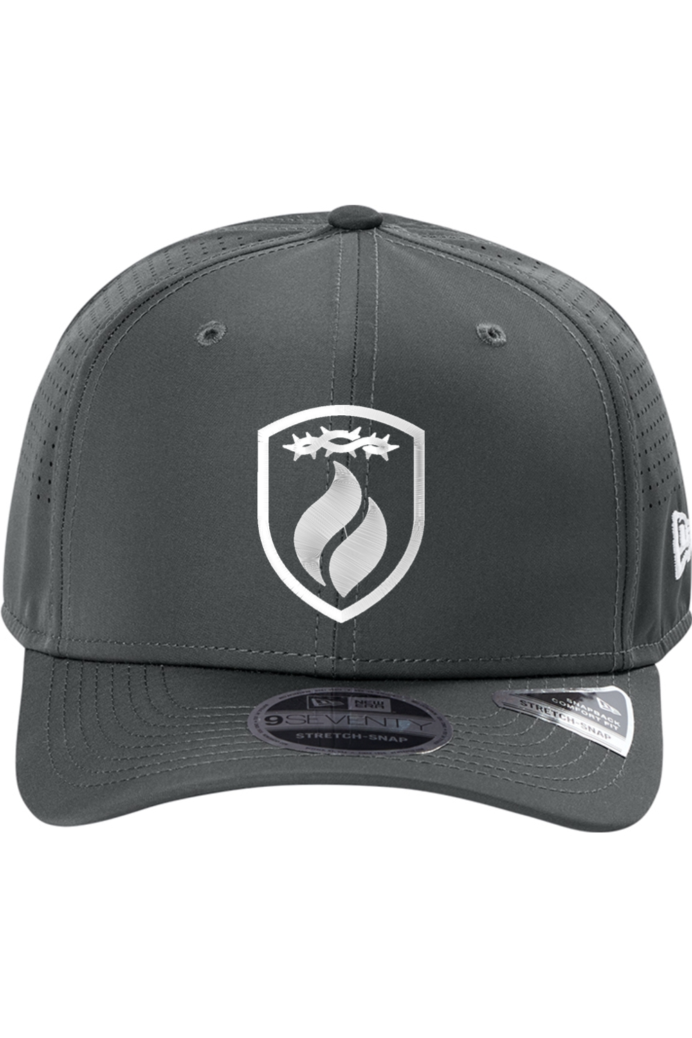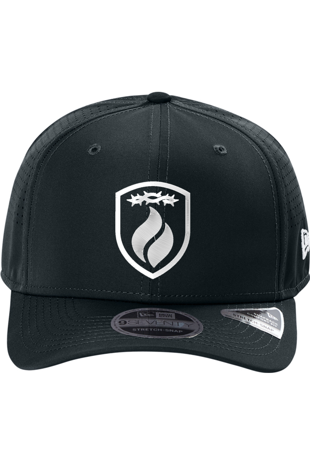 Built for breathability, performance, and bold faith. Delivers a clean athletic look with a powerful message. Featuring our flame, shield and crown of thorns logo embroidered on this New Era snapback combines protection imagery, purpose, and everyday wearability.