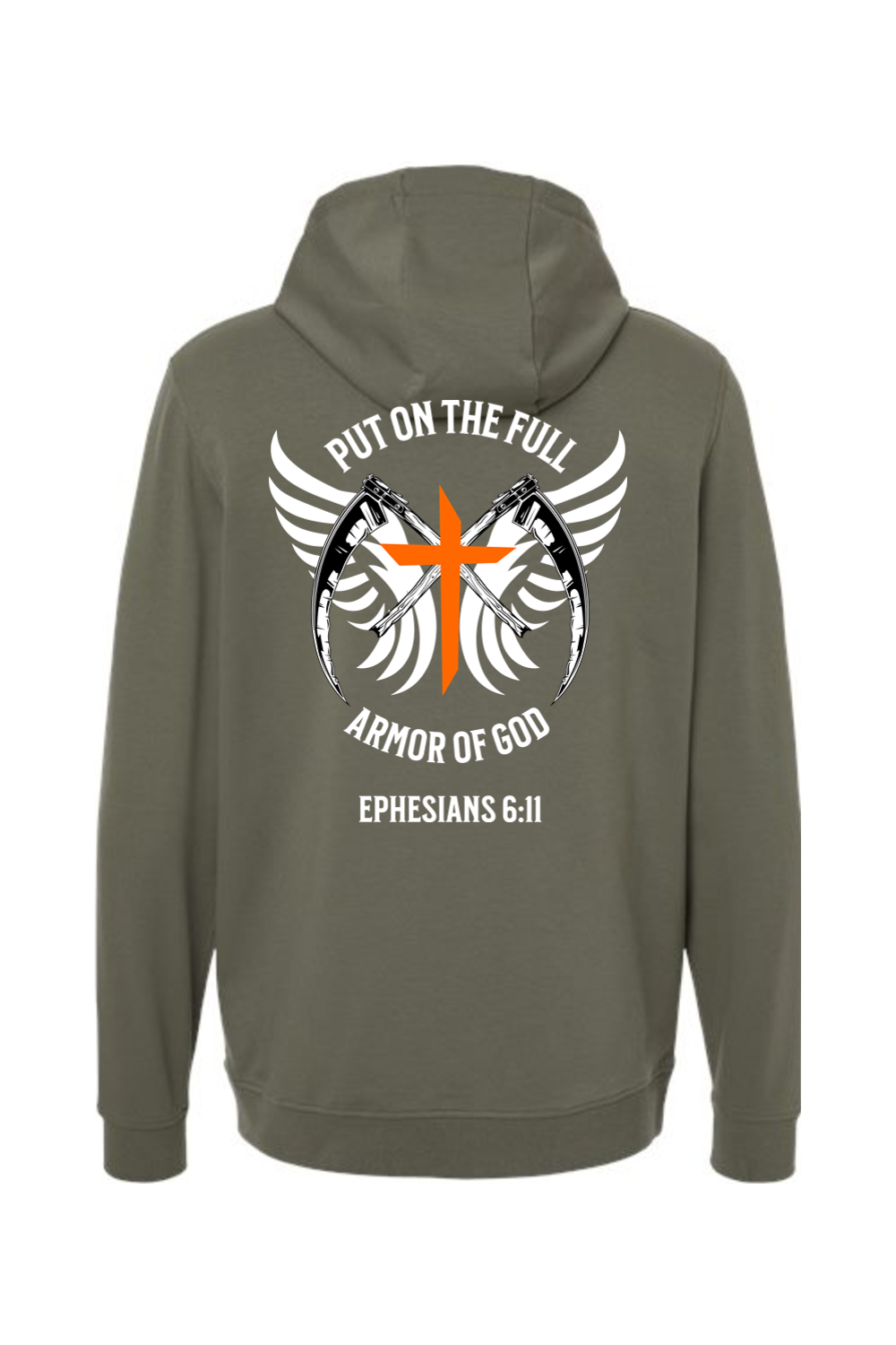 The Lightweight Performance Hoodie is designed as a reminder that faith is our greatest defense. Featuring a powerful cross-and-wings graphic accented by swords and the bold command from Ephesians 6:11, this hoodie embodies strength, courage, and spiritual readiness.