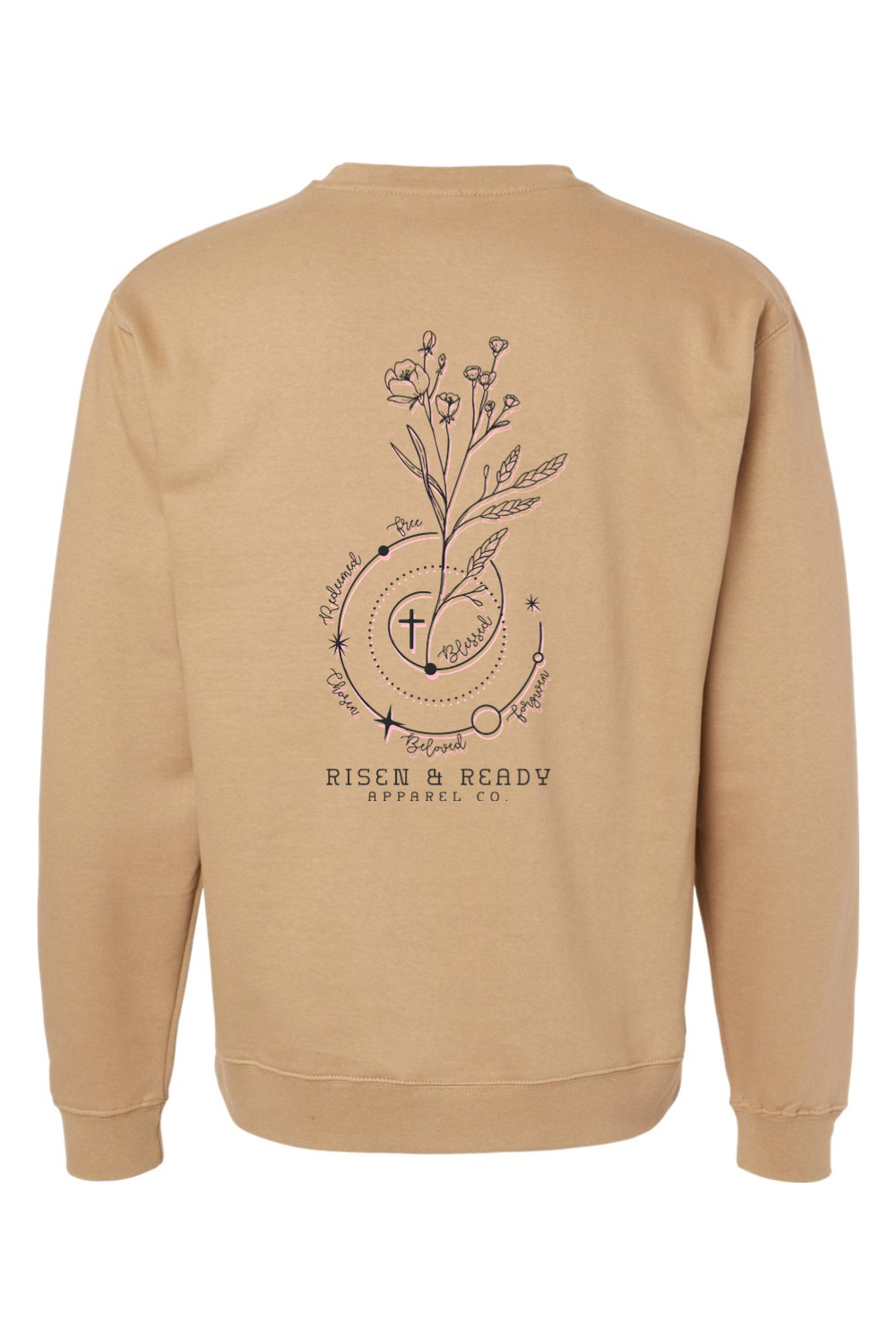 The Faith in Bloom Sweatshirt is a reminder that true growth begins at the root. Featuring a delicate floral illustration intertwined with celestial elements and anchored by the cross, this design represents a faith that continues to rise, mature, and flourish through every season.