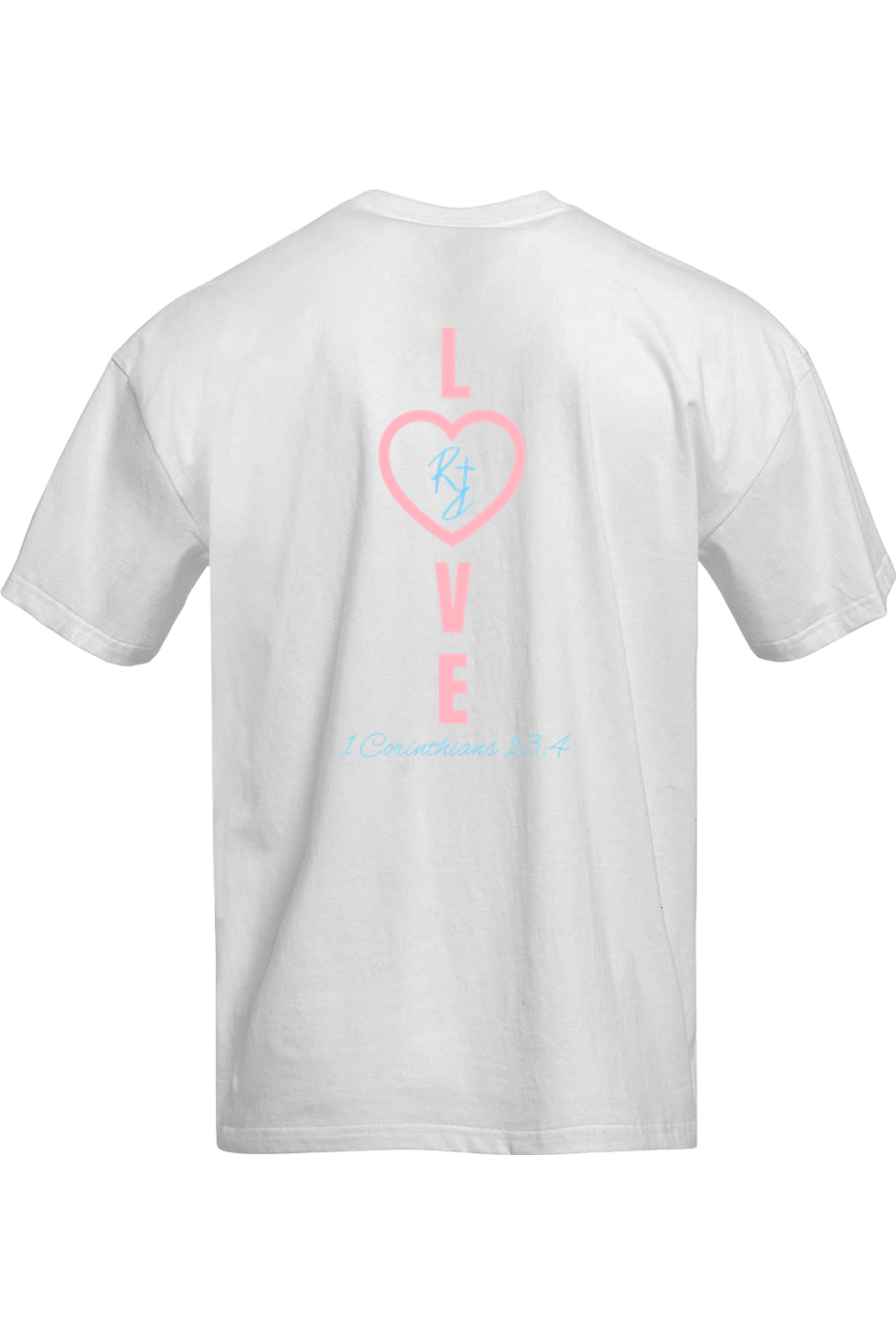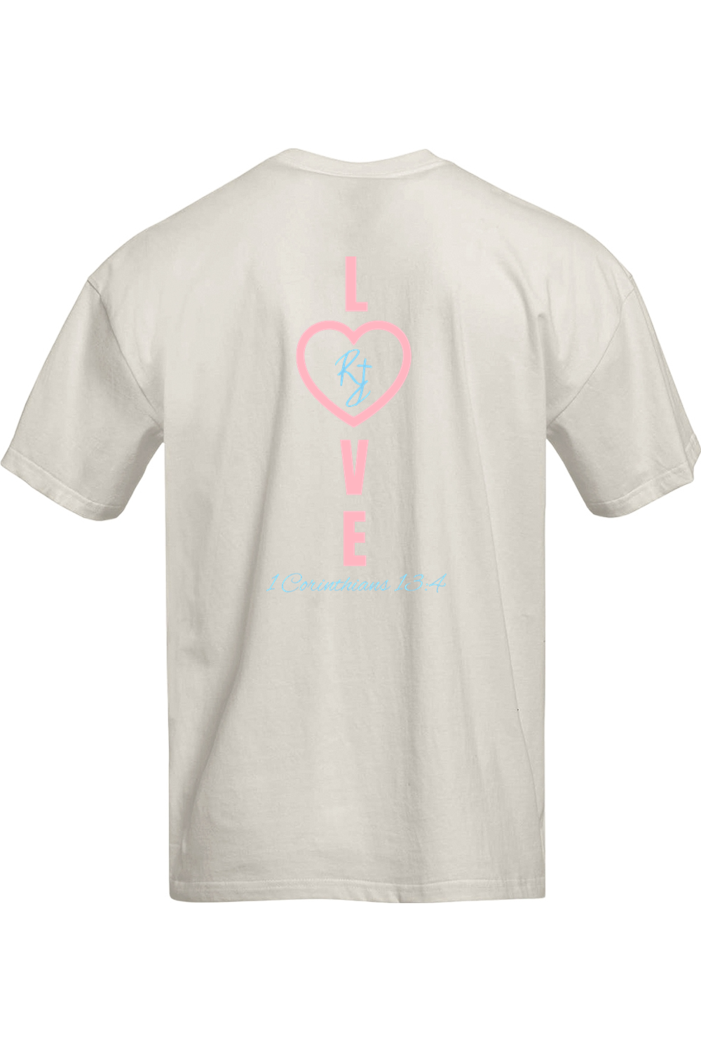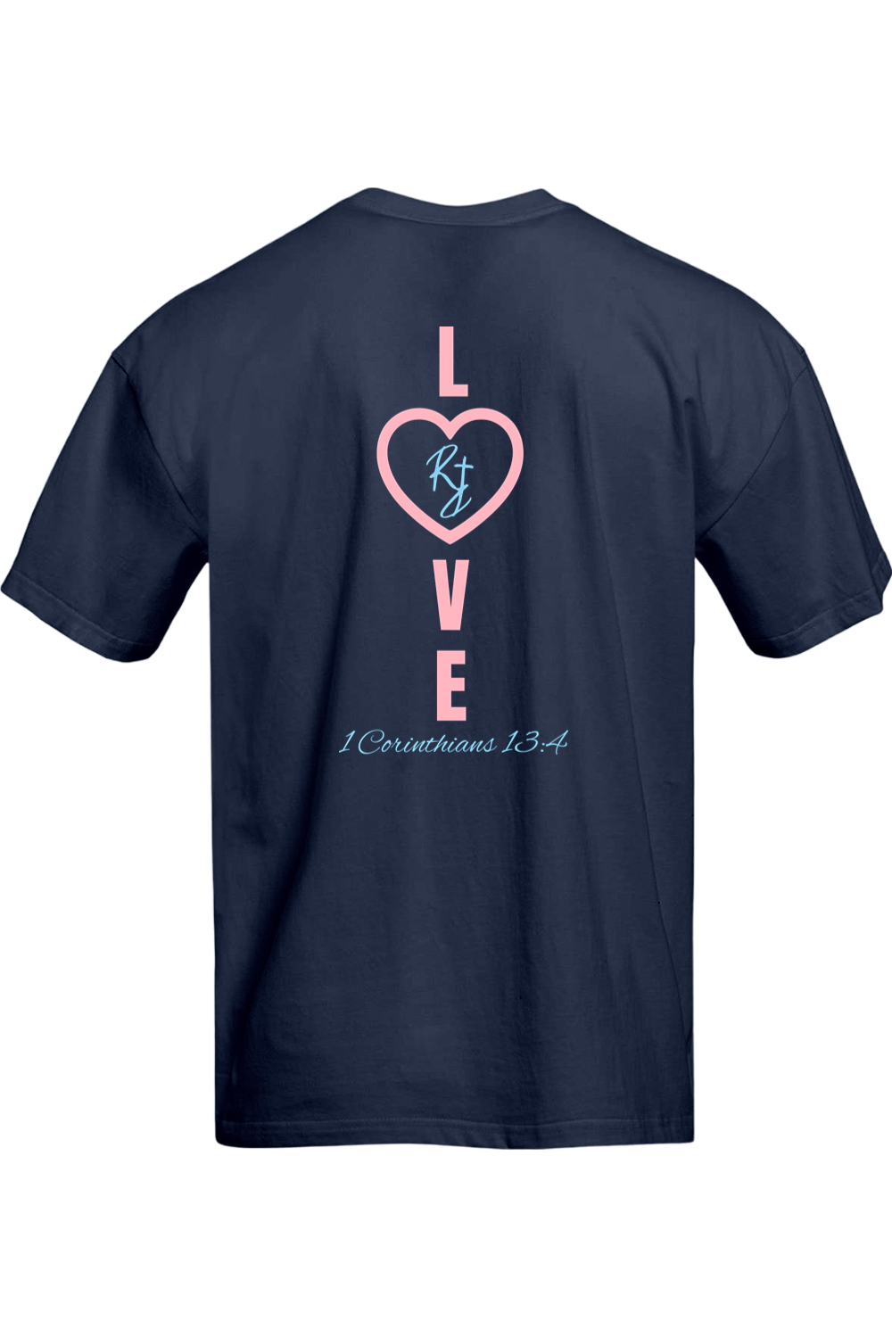 The Love Never Fails Oversized Tee is a faith-filled reminder of God’s greatest commandment. With a clean vertical “LOVE” design, accented by a heart and scripture reference, this shirt is more than apparel—it’s a declaration of the power and endurance of true love.