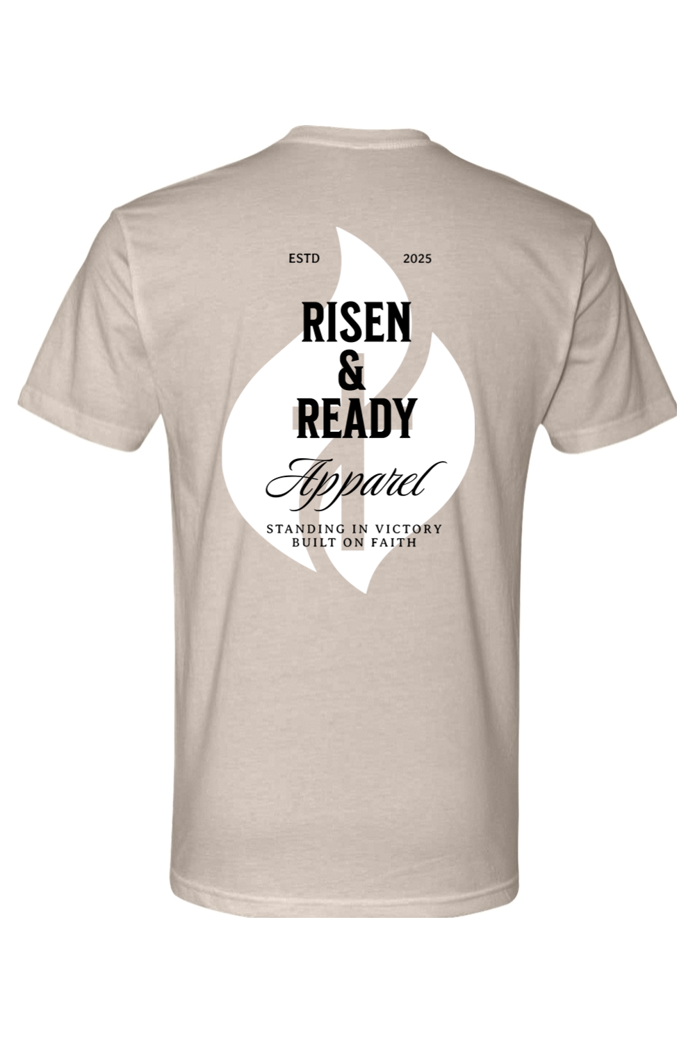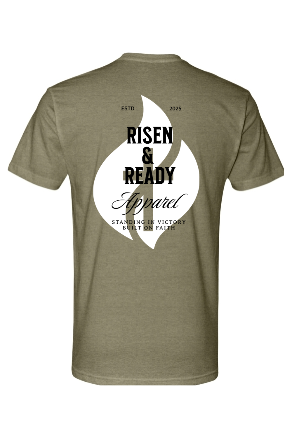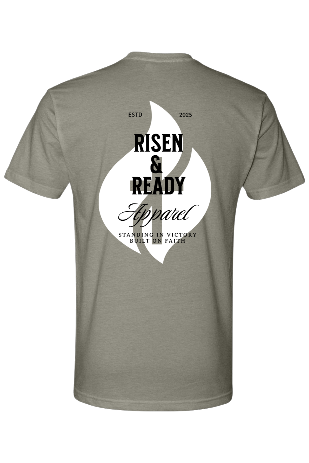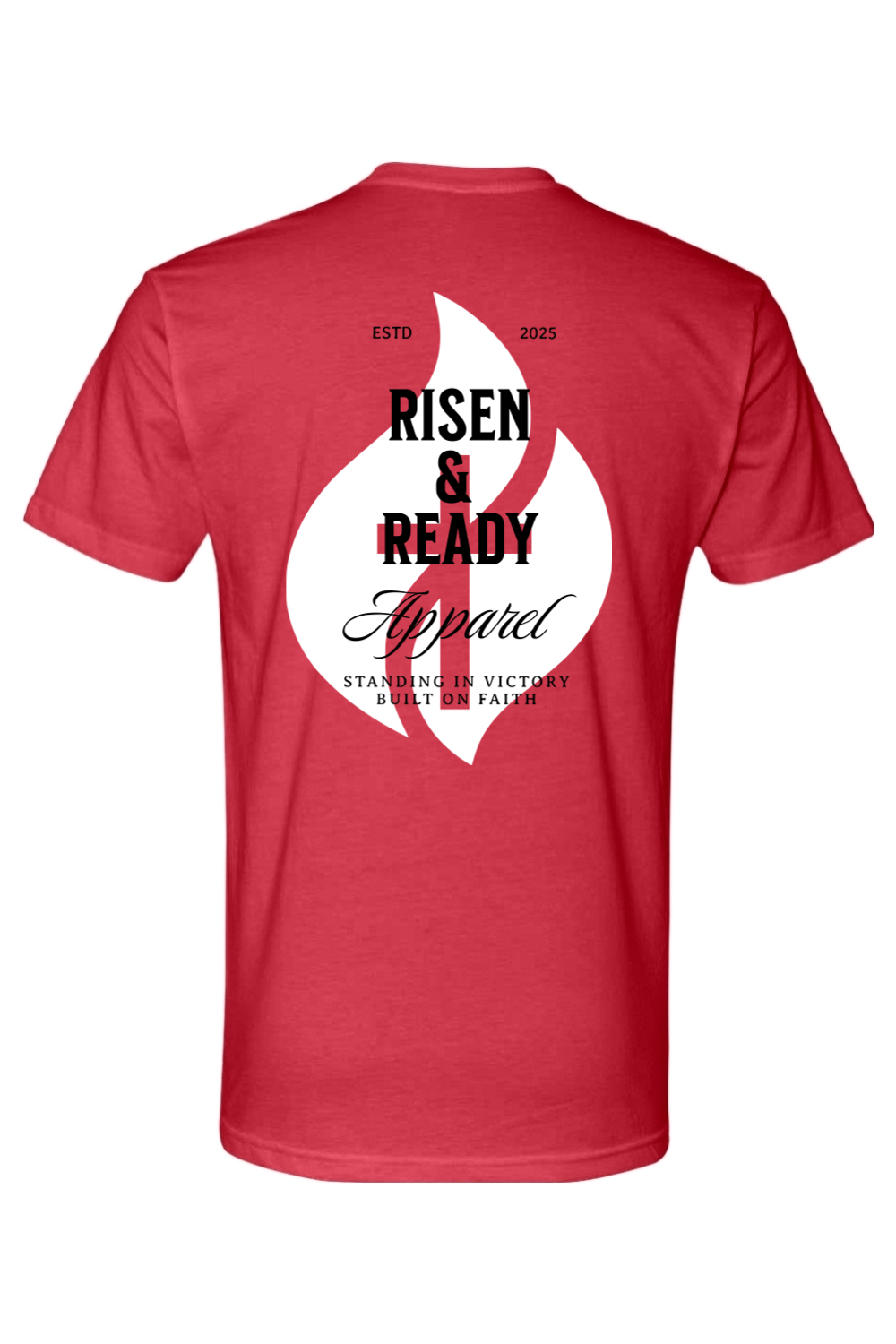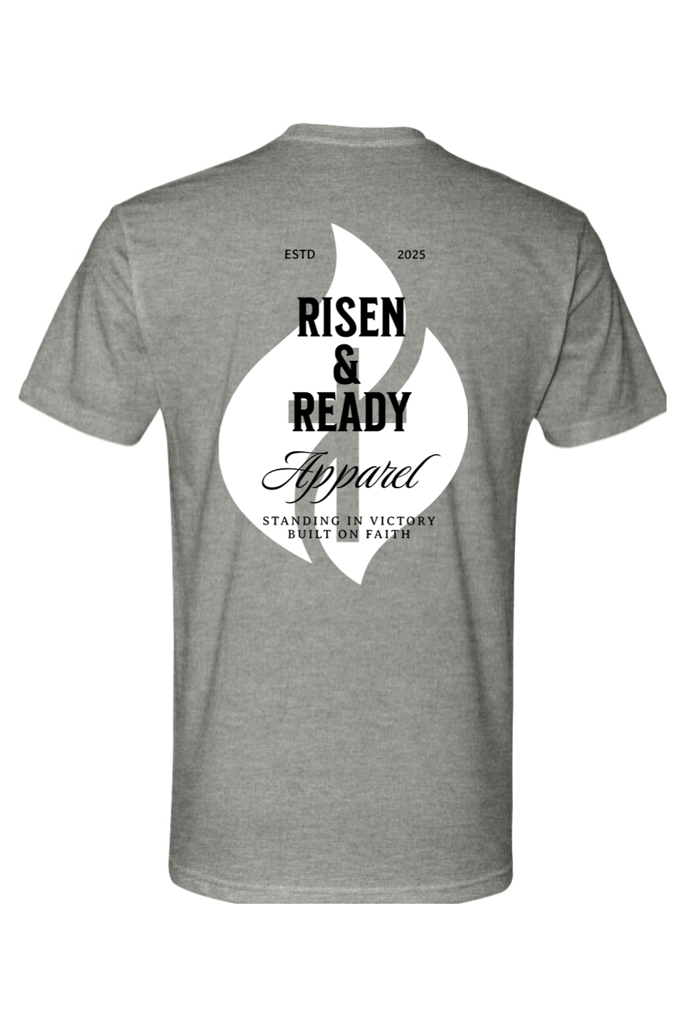 The R&R Heritage Foundation Tee is a core piece that celebrates the heart of our brand. Featuring the iconic white flame design with bold Risen & Ready Apparel lettering, “ESTD 2025,” and our core message—“Standing in Victory, Built on Faith”—this shirt represents where we started and what we stand for.